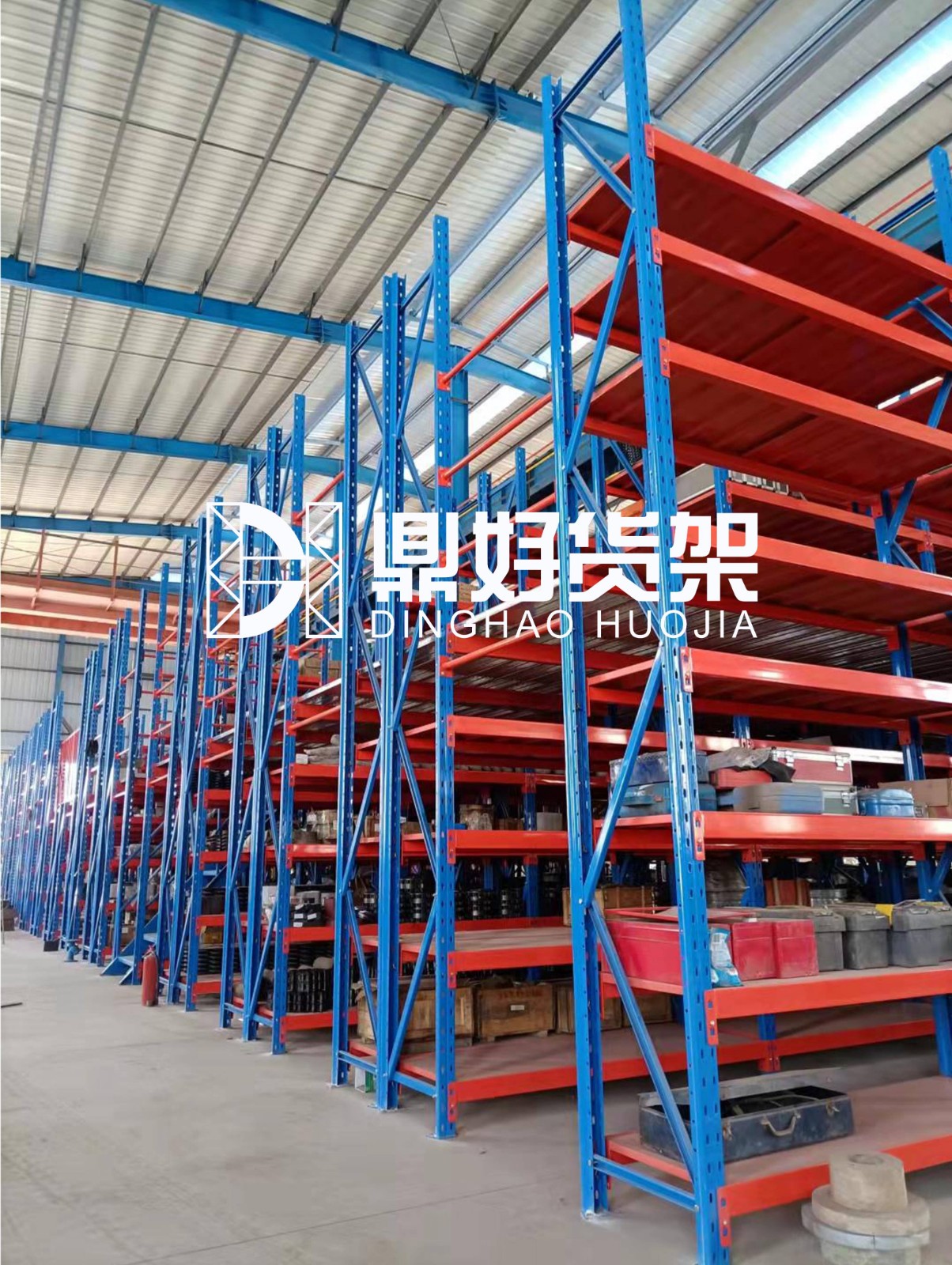 5、橫梁式貨架可有效的提高倉庫存儲高度,提高倉庫的空間使用率。適合各類型貨品存放。